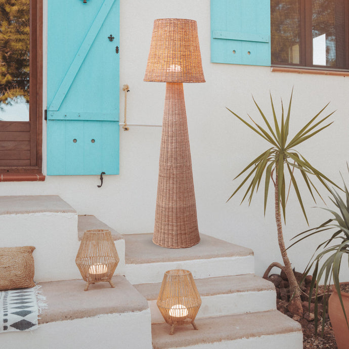 La lámpara de pie Lola 165 Nature es ideal tanto para uso interior como exterior, con una altura de 165 cm.