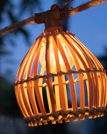 LUCIA est une guirlande de 8 mètres de long avec 10 lampes suspendues. Cette pièce transforme n'importe quel espace en un environnement enchanteur et accueillant.