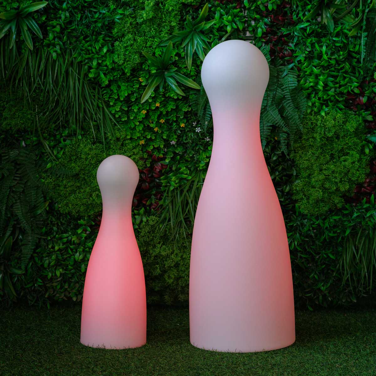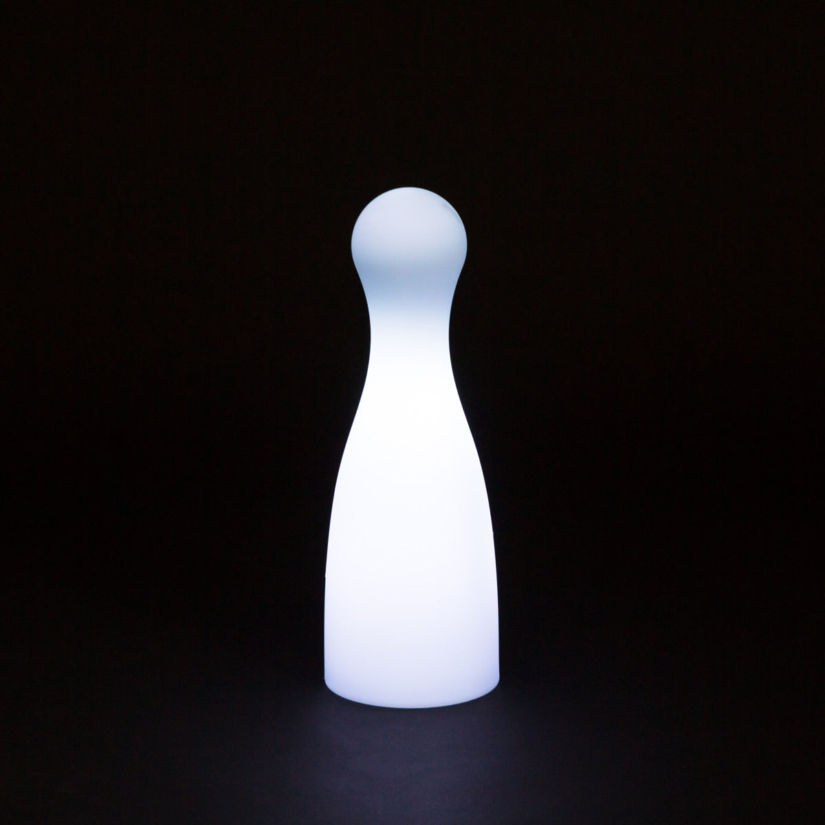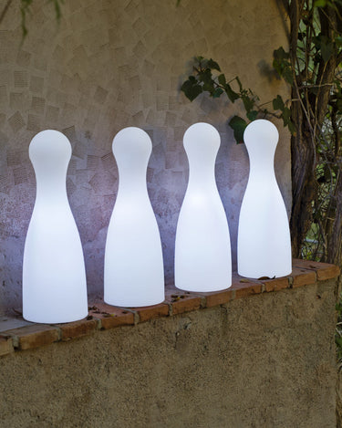 Illuminez vos nuits avec l'amusante LAMPE EN FORME DE QUILLE POL. Fabriquée en polyéthylène, cette lampe est disponible avec une connexion par câble et une lumière chaude ou avec une charge solaire + batterie rechargeable avec des options de lumières RGB et blanches. Donnez une touche unique à votre espace extérieur avec POL. Illuminez votre vie !