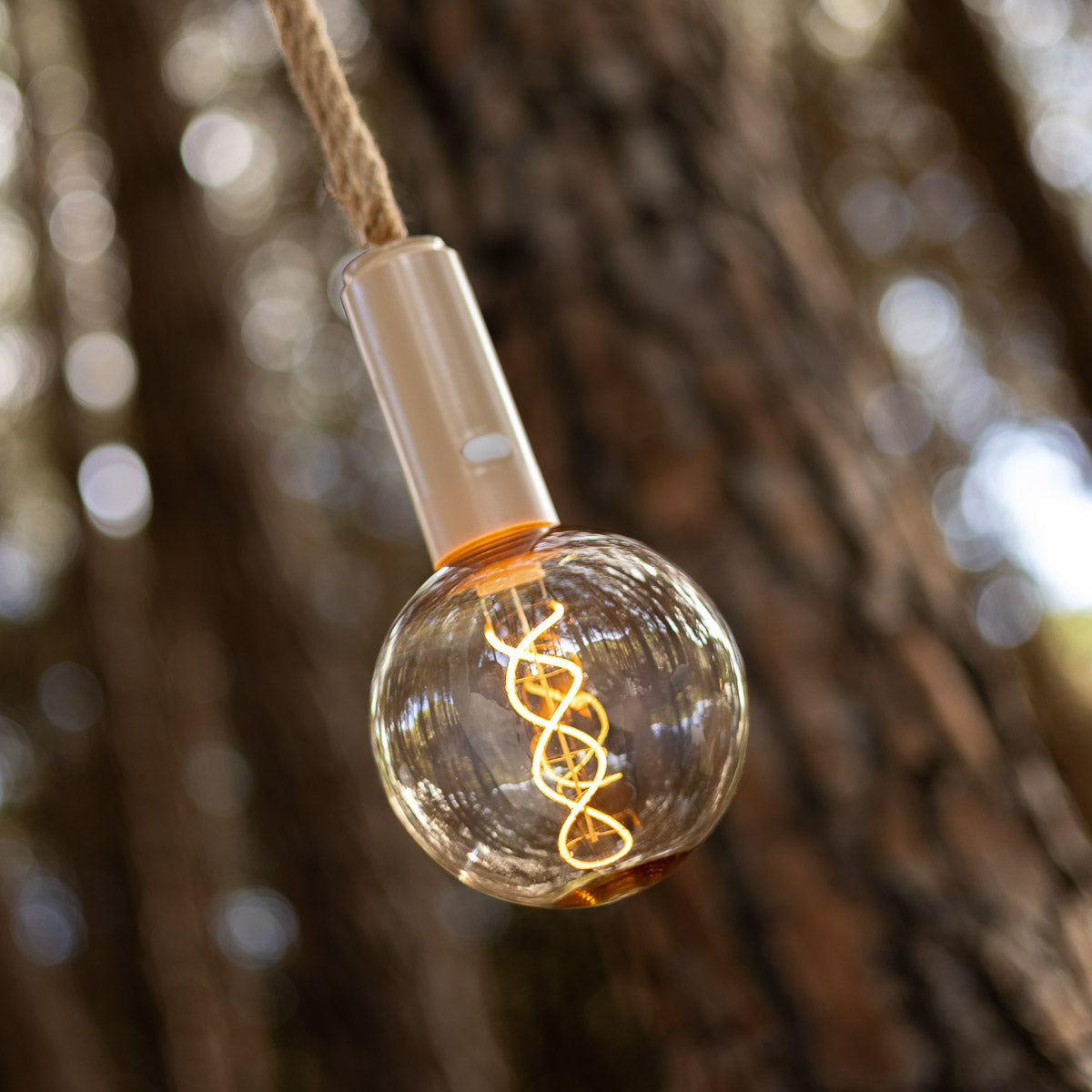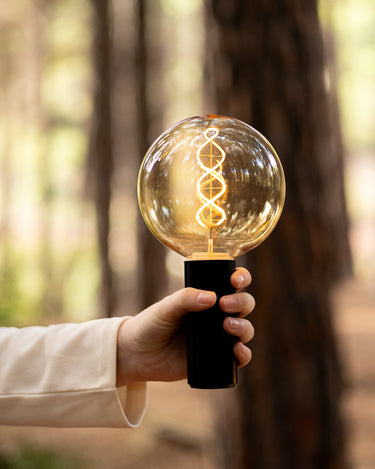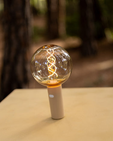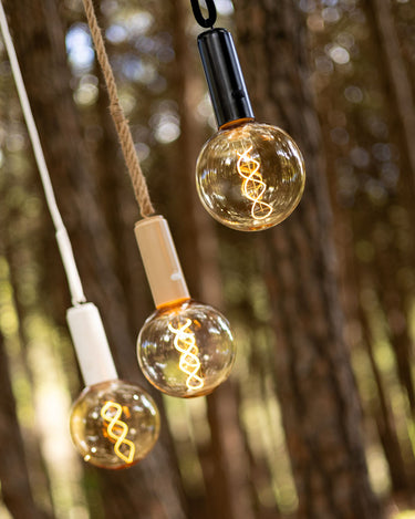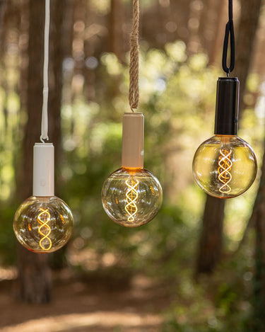 L'ampoule vintage portable sans fil EDY G125 ne nécessite aucune installation, il suffit de la suspendre ou de l'approcher d'une zone métallique pour qu'elle adhère grâce à sa base magnétique. Il intègre un filament LED d'une grande luminosité et son revêtement plastique qui simule du verre fumé est très résistant, presque incassable. Il comprend un crochet métallique pour le suspendre et un cordon de deux mètres.